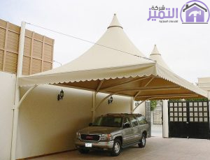 - مواقف السيارات: وتستخدم بأحجام مختلفة على المساحة ومن أنواعها القماش، الحديد، الخشب، اللكسان، الشينكو.